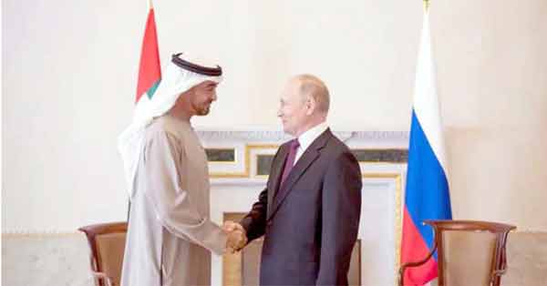 دبئی: کریملن کے ترجمان دمتری پیسکوف نے بتایا کہ اتوار کو روسی صدر ولادیمیر پوتین اور متحدہ عرب امارات کے صدر شیخ محمد بن زید النہیان کے درمیان غیر رسمی