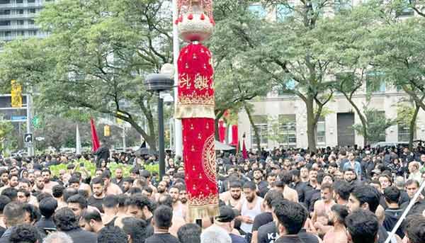 ٹورنٹو : نواسہ رسول حضرت امامِ حسین رضی اللّٰہ عنہ کی لازوال قربانی کی یاد میں کینیڈا کے شہر ٹورنٹو میں یومِ عاشور کا جلوس برآمد ہوا۔ روایتی جلوس اونٹاریو