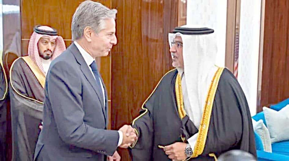 مناما: بحرین کے ولیعہد شہزادہ سلمان بن حماد کی امریکی وزیر خارجہ انٹونی بلنکن کے ساتھ ٹیلیفون پر گفتگو ہوئی ہے۔اس گفتگو میں غزہ کی صورتحال پر تبادلہ خیال کیا