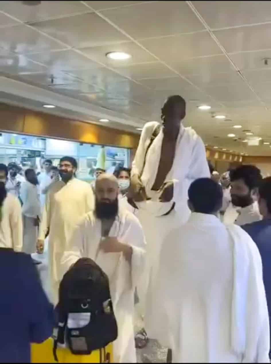 ریاض: مکہ مکرمہ میں دراز قد زائر سب کی توجہ کا مرکز بنا ہوا ہے ۔ دراز قامت شخص کی شناخت نہیں ہوسکی البتہ شکل وصورت سے معلوم ہوتا ہے
