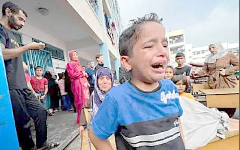 غزہ: اقوام متحدہ کی ریلیف اینڈ ورکس ایجنسی ’’اونروا‘‘ کے زیر انتظام چلنے والے اسکول کے نزدیک اسرائیلی بمباری کے نتیجے میں ہونے والی تباہی کے بعد اب تک 27