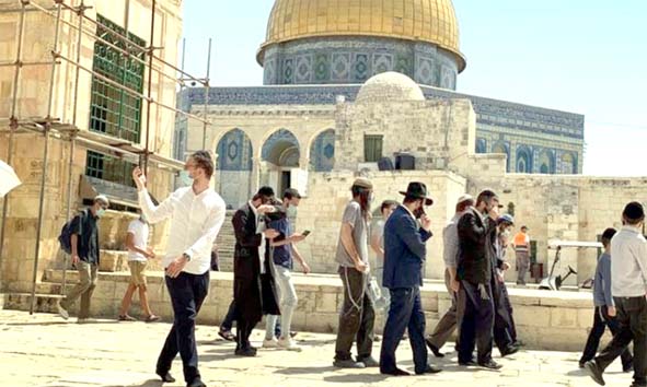 بیت المقدس : مقبوضہ بیت المقدس میںدرجنوں یہودی آباد کاروں نے اسرائیلی پولیس کی فول پروف سکیورٹی میں مسلمانوں کے قبلہ اول کی بے حرمتی کی۔فلسطینی محکمہ اوقاف کی طرف