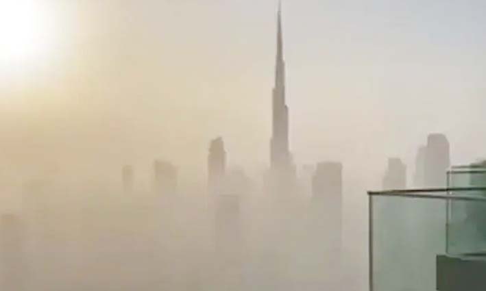 دوبئی: مشرق وسطیٰ کو اپنی لپیٹ میں لینے والے ریت کے طوفان کے متحدہ عرب امارات سے ٹکرانے کے بعد دنیا کی سب سے اونچی عمارت برج خلیفہ دھول کی