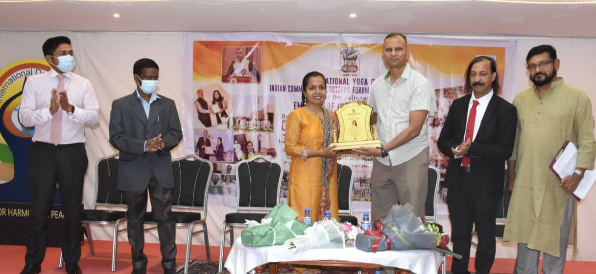 ریاض ۔ ( کے این واصف)۔ سفارت خانہ ہند ریاض کی سرپرستی مین یوگا کی classes چلانے والی یوگا انسٹرکٹر مسز سومیا کو حکومت ہند نے انڈین ہائی کمیش موریشس(Mauritius)