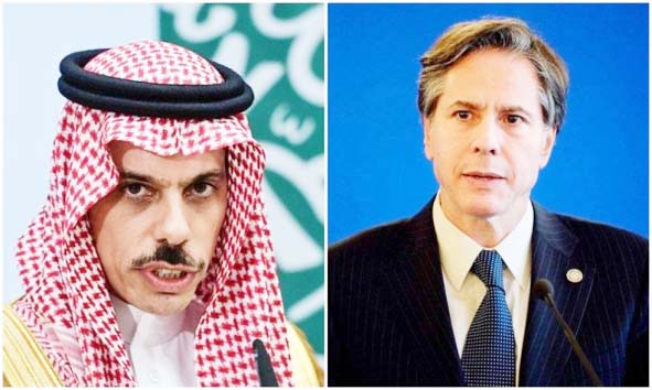 ریاض : سعودی عرب کے وزیر خارجہ فیصل بن فرحان نے امریکہ کے وزیر خارجہ انتھونی بلنکن کے ساتھ بین الاقوامی و علاقائی حالات پر بات چیت کی۔سعودی عرب وزارت
