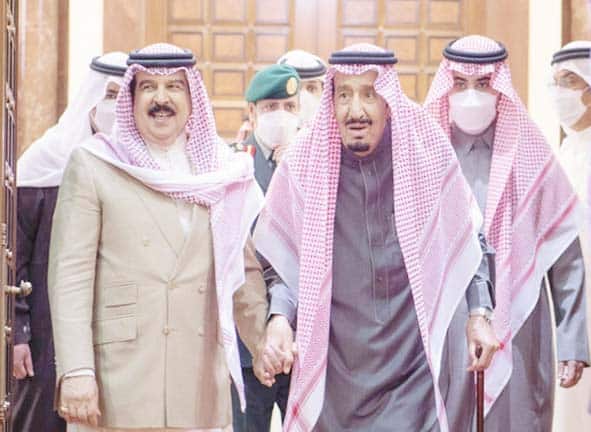 ریاض : شا ہ بحرین حمد بن عیسیٰ الخلیفہ سعودی عرب کے دورے پر ریاض پہنچ گئے، جہاں شاہ سلمان اور ولی عہد محمد بن سلمان نے ان کا پرتپاک