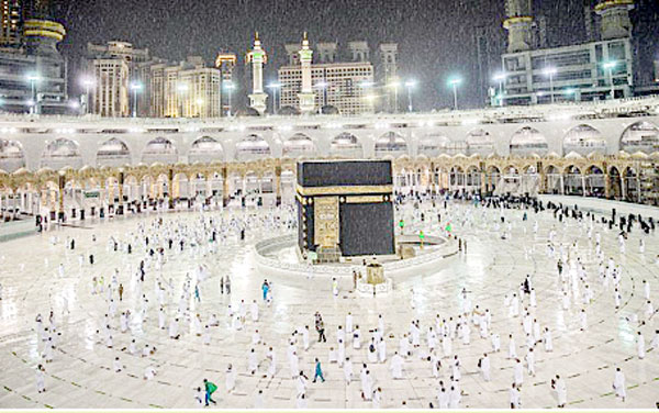 مکہ مکرمہ ۔ مکہ مکرمہ میں شام بارش ہوئی ہے۔ مسجد الحرام میں عمرہ زائرین نے عشاء کی نماز بار ش کے دوران ادا کی۔ مکہ مکرمہ اس کے مضافات