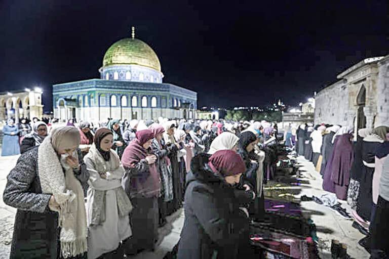 یروشلم : غاصب اسرائیل کی پابندیاں بھی فلسطینی مسلمانوں کا جذبہ ایمانی گھٹا نہ سکیں اور ہزاوں فلسطینیوں نے مسجد الاقصیٰ میں نماز تراویح ادا کی۔غاصب صیہونی ریاست اسرائیل کی