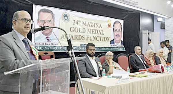 پروفیسر علی رضا موسوی ‘ جناب اوصاف سعید ‘ روبینہ مظہر اور دوسروں کی شرکت حیدرآباد۔14 اکتوبر (پریس نوٹ) مدینہ ایجوکیشنل سوسائٹی کی جانب سے 34 واں گولڈ میڈل ایوارڈ