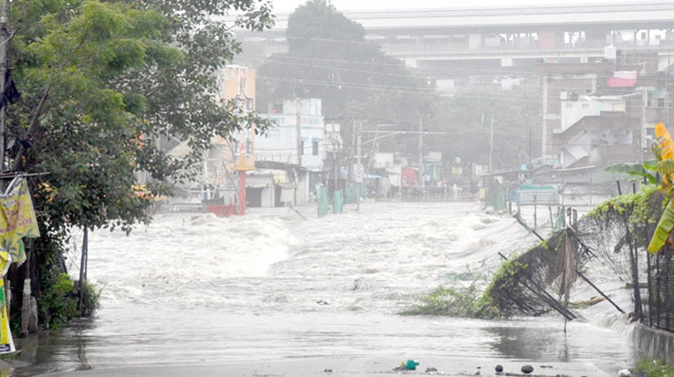 موسلا دھار بارش کے بعد عثمان ساگر اور حمایت ساگرکے دروازے کھولے جانے کے بعد دریائے موسی پانی سے بھرا ہوا ہے۔ حیدرآباد: بہادر پورہ حلقہ کے اسدبابا نگر، کشن