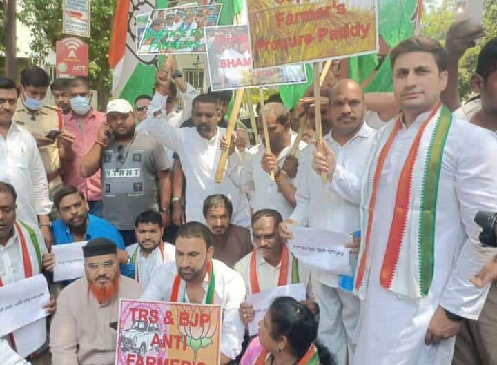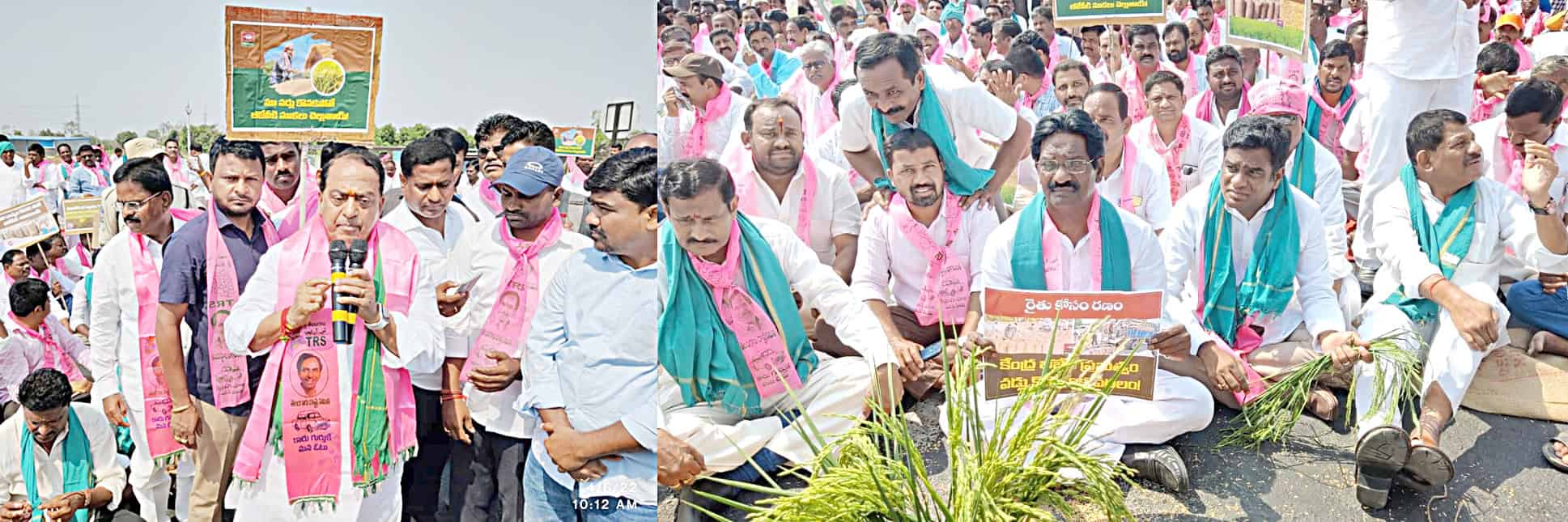 حیدرآباد: تلنگانہ سے دھان کی خریداری کے لیے مرکزی حکومت پر دباؤ بڑھاتے ہوئے ریاست تلنگانہ کی حکمراں جماعت ٹی آر ایس نے جمعرات کو ریاست بھر میں احتجاج کیا۔تلنگانہ