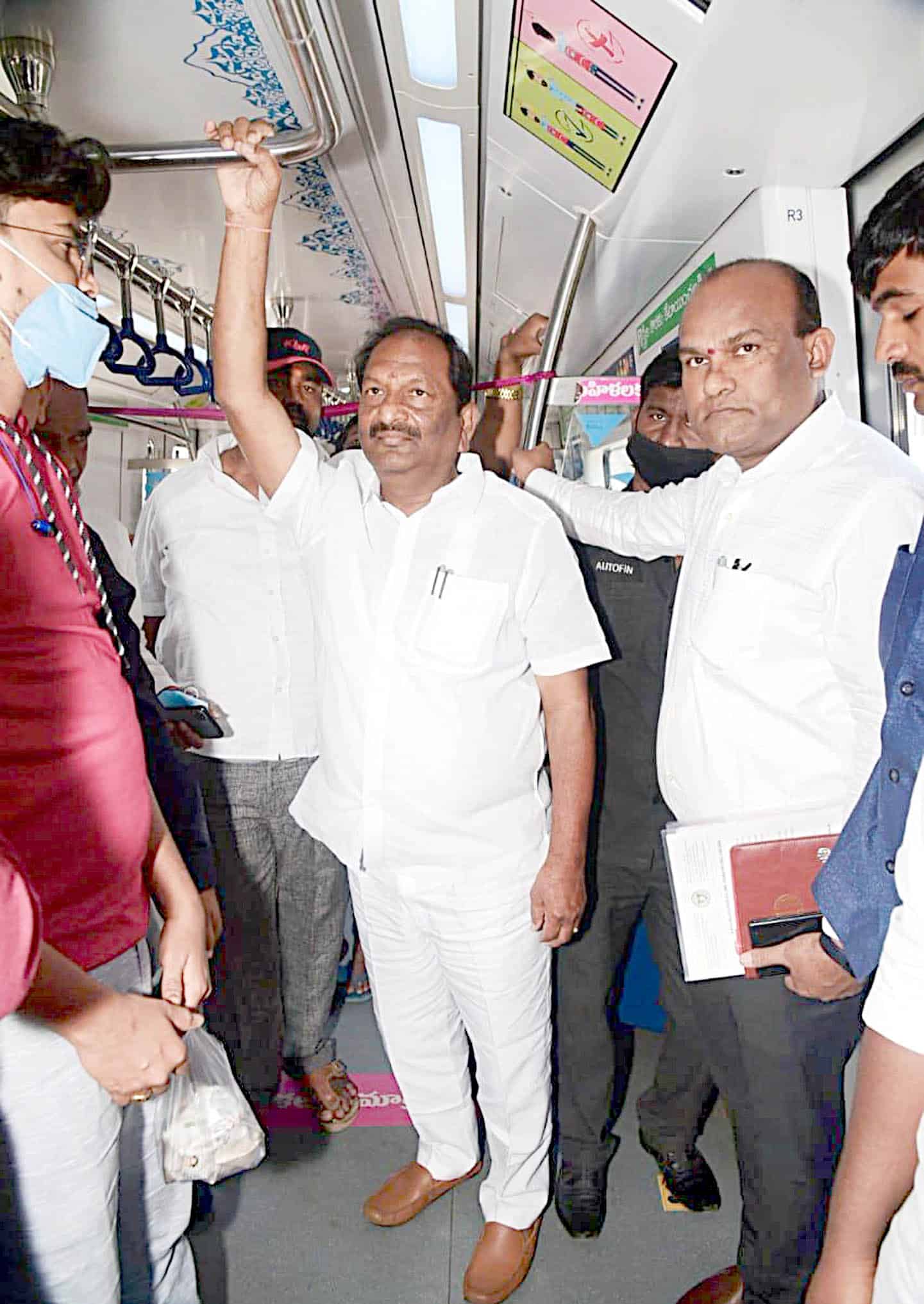 حیدرآباد17۔ مارچ (سیاست نیوز) وزیر اقلیتی بہبود کے ایشور نے آج میٹرو ٹرین میں سفر کرکے مسافرین کیلئے سہولتوں کی ستائش کی۔ وزیر اقلیتی بہبود نے پولیس ہاؤزنگ کارپوریشن صدرنشین