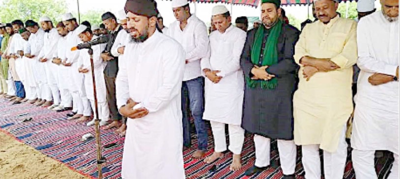 شامیانے لگا کر جائے نماز کا اہتمام ۔ سار اعلاقہ پولیس چھاؤنی میں تبدیل ۔ تمام راستوں کی ناکہ بندیشمس آباد 5 اگسٹ ( محمود علی خان ) شمس آباد