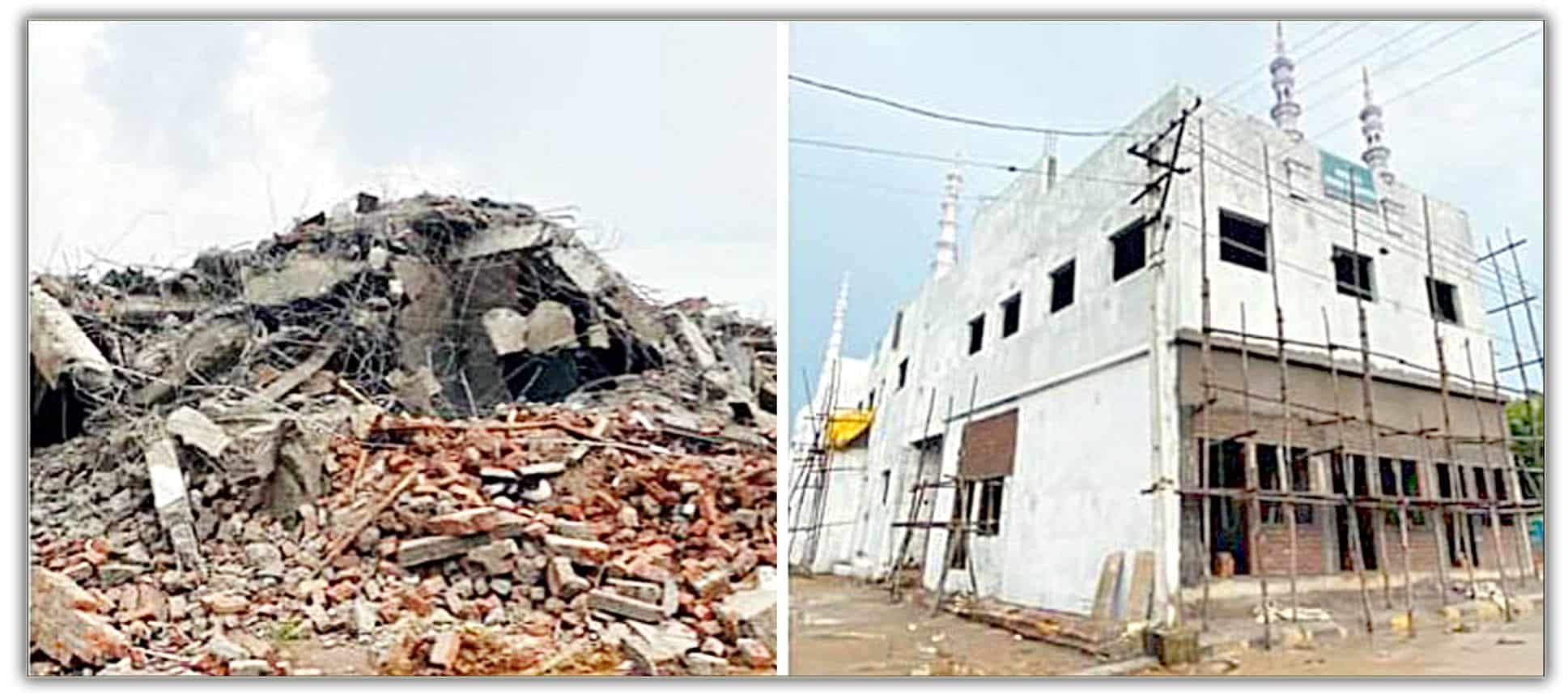 شمس آباد میں محکمہ مال ‘ بلدیہ اور پولیس کی نگرانی میں رات دیر گئے انہدامی کارروائی ۔ علاقہ کی برقی منقطع اور مسلم مکانات مقفل کرکے مسجد کو شہید