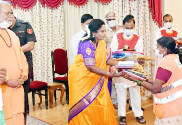 کورونا سے بچاؤ کیلئے احتیاطی تدابیر کا مشورہ، صفائی عملے میں ملبوسات اور اشیاء کی تقسیمحیدرآباد۔/2 اگسٹ، ( سیاست نیوز) گورنر ڈاکٹر ٹی سوندرا راجن نے ہر گھر ترنگا تقاریب