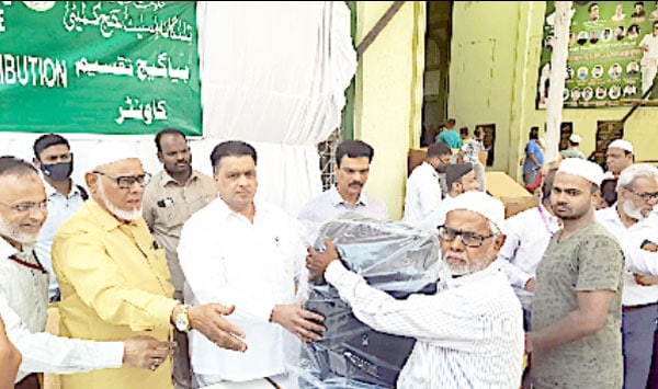 عازمین کیلئے سوٹ کیس کی تقسیم ، صدرنشین حج کمیٹی کی جانب سے کل آخری تربیتی کیمپ حیدرآباد۔13۔ جون (سیاست نیوز) حج 2022 ء کے منتخب عازمین میں آج معیاری