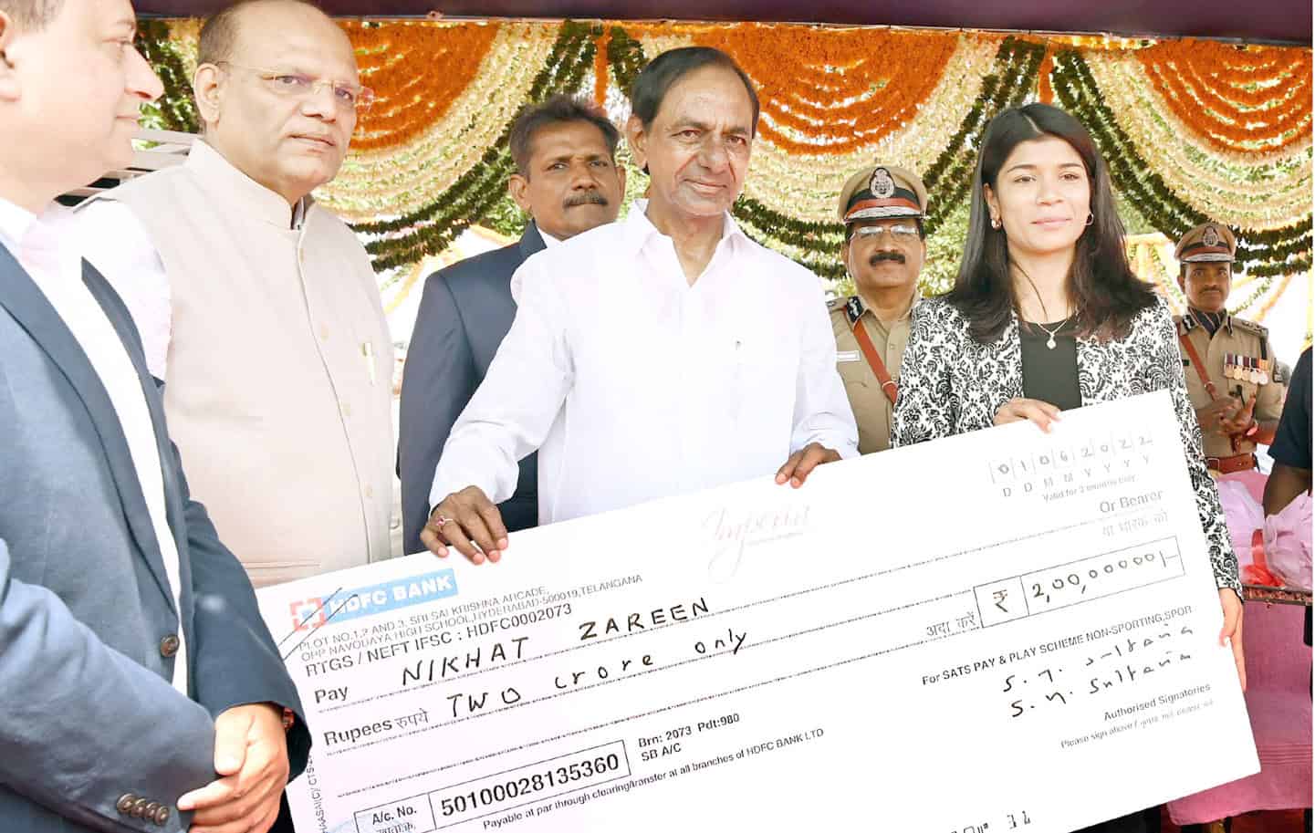 کے سی آر نے فی کس 2 کروڑ روپئے کا چیک حوالے کیا ، پدم شری درشنم مگلیا کی بھی ستائشحیدرآباد۔/2 جون، ( سیاست نیوز) چیف منسٹر کے چندر شیکھر