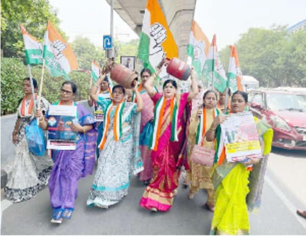 گاندھی بھون تا معظم جاہی مارکٹ احتجاج، حکومت سے ویاٹ میں کمی کا مطالبہحیدرآباد۔9۔ مئی (سیاست نیوز) پکوان گیس کی قیمتوں میں اضافہ کے خلاف مہیلا کانگریس کی جانب سے
