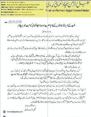 مولانا سجاد نعمانی کا صدر مجلساسدالدین اویسی کو دوسرا مکتوب حیدرآباد۔23 جنوری (سیاست نیوز) اترپردیش انتخابات کے سلسلہ میں 12 جنوری کو مولانا سجاد نعمانی کا بیرسٹر اسد الدین اویسی