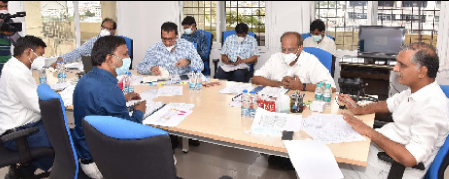 ڈرائیورس، بینک ملازمین اور دیگر شعبہ جات کا انتخاب، ہریش راؤ کا جائزہ اجلاس حیدرآباد۔ وزیر فینانس ہریش راؤ اور چیف سکریٹری سومیش کمار نے ریاست میں جاری ٹیکہ اندازی
