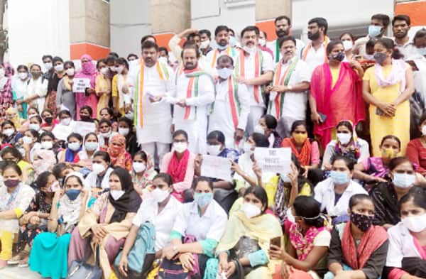 گاندھی بھون سے ریالی کی کوشش ناکام، کئی قائدین گرفتارحیدرآباد۔9 ۔جولائی (سیاست نیوز) حکومت کی جانب سے اچانک برطرف کئے گئے سینکڑوں اسٹاف نرسس نے آج گاندھی بھون پہنچ کر