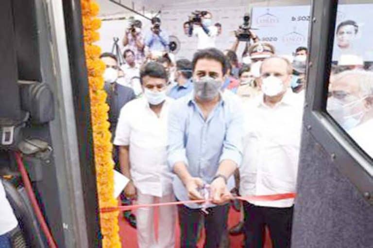30 کے منجملہ ایک بس میں ایک ڈاکٹر، دونرس اور 10 بیڈس دستیابحیدرآباد۔ وزیر بلدی نظم و نسق کے ٹی آر نے ٹینک بنڈ پر آج موبائیل آئی سی یو