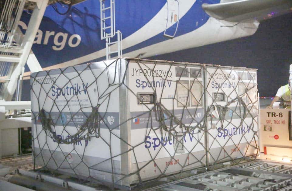 حیدرآباد: جی ایم آرحیدرآباد ایرکارگو نے آج اسپوتنک وی ٹیکوں کی ایک بڑی کھیپ حاصل کی ۔یہ کھیپ روس سے خصوصی طیارہ کے ذریعہ آج صبح اولین ساعتوں میں 3.43بجے