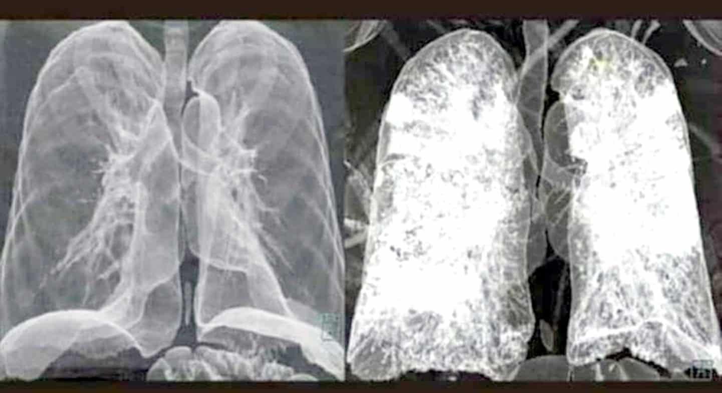 حیدرآباد۔ ڈاکٹر سمیت کے دوبے ہیڈ انٹرنیشنل ان اوکیلیشن سنٹر این ایم ڈی سی نے دو تصاویر 3D CT کورونا پازیٹیو مریض کی جاری کی ہیں۔ پہلی تصویر ٹیکہ لے