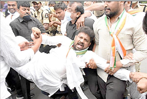 مخلوعہ جائیدادوں پر تقررات کا مطالبہ، پولیس اور کارکنوں کے درمیان تکرارحیدرآباد: تلنگانہ میں سرکاری محکمہ جات کی مخلوعہ جائیدادوں پر تقررات کا مطالبہ کرتے ہوئے یوتھ کانگریس کارکنوں نے