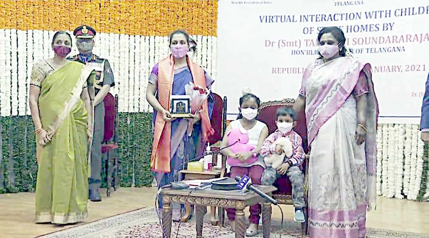 گورنر نے بچوںکو اپنی کرسی پر بٹھایا، دیگر ایوارڈ یافتگان کی ستائش حیدرآباد: گورنر ٹی سوندرا راجن نے وادیٔ گلوان میں چین کے ساتھ تصادم میں شہید ہونے والے کرنل