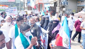 کانگریس پارٹی کا اعلان، کھمم میں کسانوں کی تائید میں انسانی زنجیر حیدرآباد۔ مرکزی حکومت کے زرعی قوانین سے دستبرداری کا مطالبہ کرتے ہوئے کانگریس پارٹی نے آج کھمم ضلع