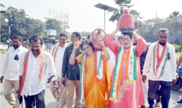 خالی سلینڈرس کے ساتھ احتجاج، اشیائے ضروریہ کی قیمتوں میں اضافہ کی مذمتحیدرآباد: پکوان گیس کی قیمت میں مسلسل چوتھی مرتبہ اضافہ کے خلاف کانگریس پارٹی نے آج بشیر باغ