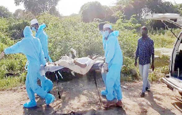 کورونا سے متاثر بیٹے نے پی پی ای کٹس پہن کر نعش کو جے سی بی کے ذریعہ شمشان گھاٹ منتقل کیا حیدرآباد :۔ کورونا کے خوف سے رشتوں کی