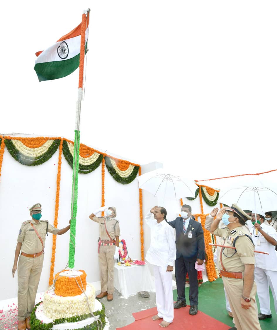 سکندرآباد پریڈ گراؤنڈ پر مجاہدین آزادی کو خراج حیدرآباد۔ چیف منسٹر کے سی آر نے پرگتی بھون میں 74 ویں یوم آزادی تقریب کا اہتمام کیا اور قومی پرچم لہرایا