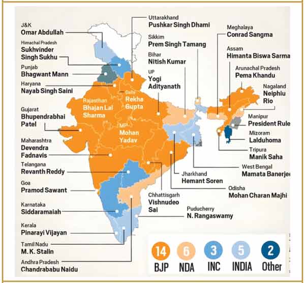 ملک کے سیاسی نقشہ پر بی جے پی کا غلبہ، 14 ریاستوں میں اقتدار