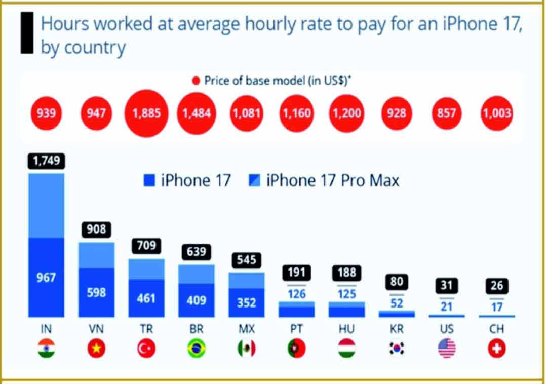 آمدنی کے اعتبار سے مختلف ممالک میں سروے ، عصری فون کیلئے ہندوستان میں تقریباً ایک ہزار گھنٹے کام کی ضرورتحیدرآباد ۔3 ۔ اپریل (سیاست نیوز) موبائیل فون کے استعمال