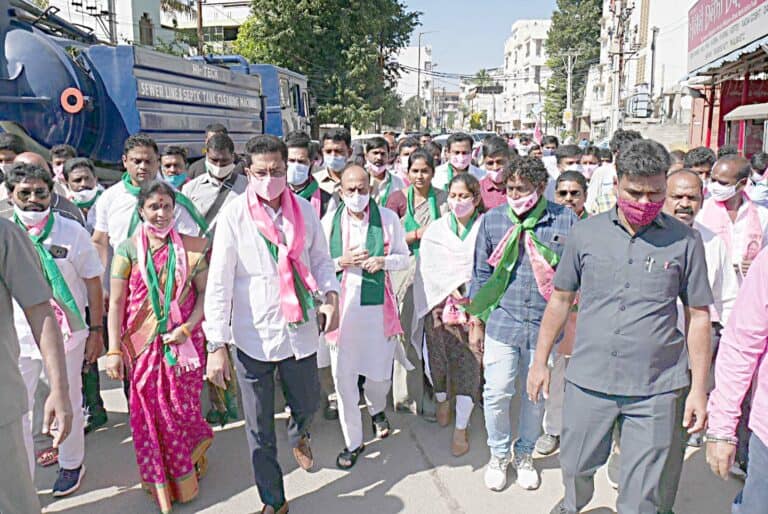 شاد نگر میں منظم کردہ احتجاج میں حصہ لیا۔ کسان دشمن قوانین سے دستبردارہوجانے کا مطالبہ حیدرآباد : ٹی آر ایس کے ورکنگ پریسیڈنٹ و ریاستی وزیر بلدی نظم و