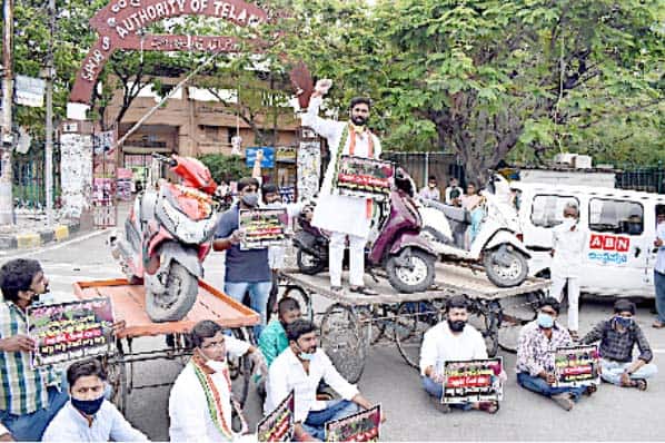 اضافہ واپس لینے کا مطالبہ،انیل کمار یادو نے قیادت کی حیدرآباد۔ پٹرول اور ڈیزل کی قیمتوں میں مسلسل اضافہ کے خلاف یوتھ کانگریس کی جانب سے آج بشیرباغ پر احتجاج
