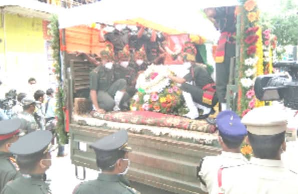 سوریہ پیٹ 18 جون ( پی ٹی آئی ) چینی فوج کے ساتھ جھڑپ میں شہید کرنل بی سنتوش بابو کی مکمل فوجی اعزازات کے ساتھ آج آخری رسومات ادا