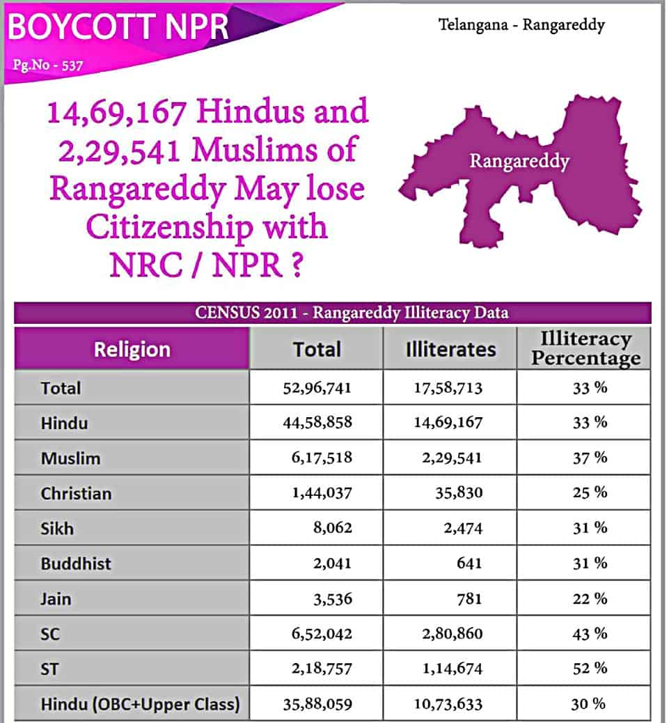 14 لاکھ 69 ہزار 167 ہندوؤں کو بھی خطرہ ، این پی آر کے نام حاصل کردہ تفصیلات کو این آر سی میں استعمال کا خدشہ حیدرآباد۔12فروری(سیاست نیوز) شہر حیدرآباد