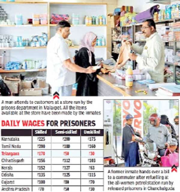 حیدرآباد9 فروری (سیاست نیوز) جیلوں میں سزا یافتہ گان کو ان کے کام کے لئے اجرت کی ادائیگی کی بات ہو تو تلنگانہ کے جیل ملک میں قیدیوں کو بہتر