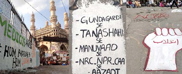 قانون شہریت ، این آر سی، این پی آر کے خلاف نعرہ بازی ، اہم تنظیموں اور قائدین کا اظہارِ یگانگت حیدرآباد۔19جنوری(سیاست نیوز) شہر میں تاریخی چارمینار کے دامن میں