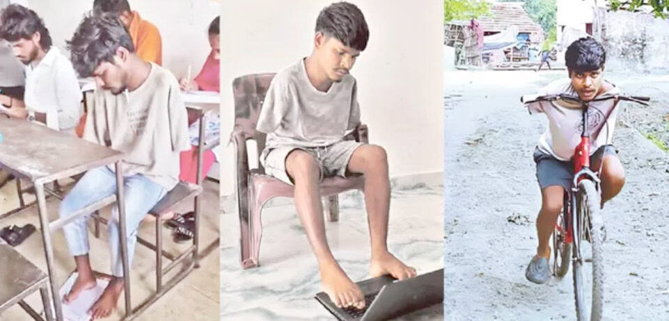 دونوں ہاتھوں سے محروم 23 سالہ گریجویٹ شنکر، پاؤں سے لیاپ ٹیاب چلاتا ہے ۔ محنت مزدوری کرتا ہےحیدرآباد /25 جولائی (سیاست نیوز ) معذوری مجبوری نہیں ہوتی یہ بات