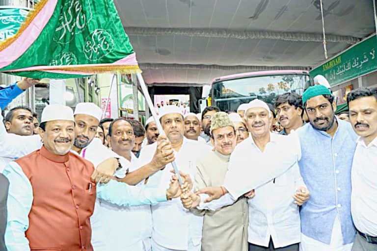 ۔340 عازمین پر مشتمل قافلہ کو وزیر داخلہ محمد محمود علی و دیگر وزراء نے وداع کیا حیدرآباد /26 جولائی ( سیاست نیوز)تلبیہ کی گونج میںعازمین حج کا پہلا قافلہ