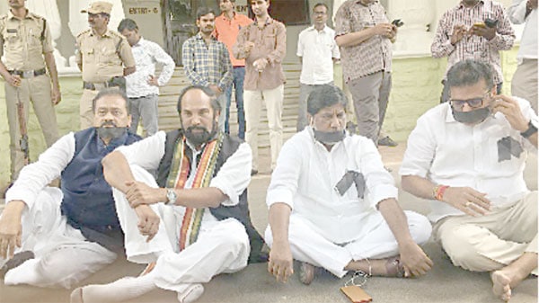 احاطہ اسمبلی میں دھرنا، پولیس نے اتم کمار ریڈی، بھٹی وکرمارکا اور محمد علی شبیر کو حراست میں لے لیا، اسمبلی کے باہر کانگریس کارکنوں کا احتجاج حیدرآباد ۔ 6۔