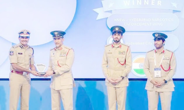 دوبئی میں تقریب ، سربراہ ونگ و سٹی پولیس کمشنر سی وی آنند نے ایوارڈ حاصل کیا حیدرآباد ۔ 16 ۔ مئی : ( سیاست نیوز ) : حیدرآباد نارکوٹیک