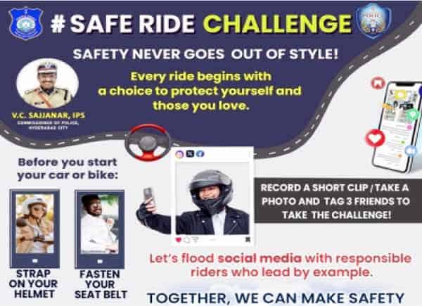 محفوظ ڈرائیونگ کے لیے ہیلمٹ اور سیٹ بلٹ کے ساتھ ویڈیوز شیر کرنے کا مشورہحیدرآباد۔ 13 اکتوبر (سیاست نیوز) حیدرآباد کے شہریوں میں ڈرائیونگ کی عادتوں کو سدھارنے کے لئے