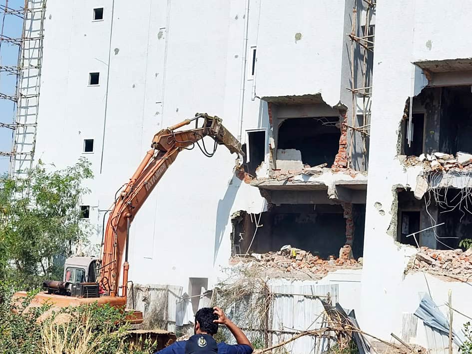 حیدرآباد۔5۔جنوری(سیاست نیوز) شہرکے نواحی علاقہ مادھاپور میں ’حیڈرا‘ کی جانب سے بڑے پیمانے پر کاروائی کا آغاز کرتے ہوئے ’اییپاسوسائیٹی ‘ میں زیر تعمیر 5منزلہ عمارت کو منہدم کرنے کا