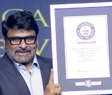 حیدرآباد /22 ستمبر ( سیاست نیوز ) تلگو فلموں کے میگا اسٹار چرنجیوی کا نام گینز بک آف ورلڈ ریکارڈس میں شامل کیا گیا ۔ حال میں انہیں پدما وبھوشن
