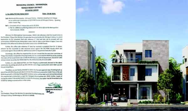 حیدرآباد 25 اگست (سیاست نیوز) راجندر نگر اسمبلی حلقہ کے منی کنڈہ میونسپل کے علاقہ چتراپوری کالونی کے 225 ولاز کو منی کنڈہ میونسپل کمشنر کے پی کمار نے نوٹس